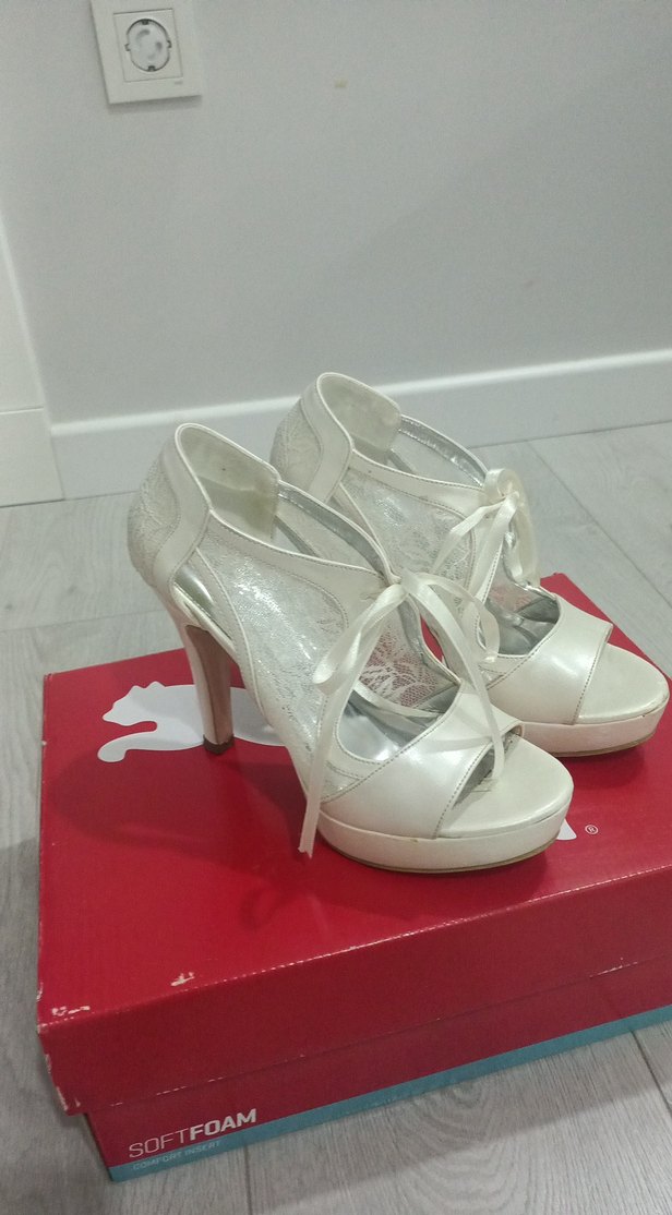 Beyaz Dantel Detaylı Yüksek Topuklu Kadın Ayakkabı