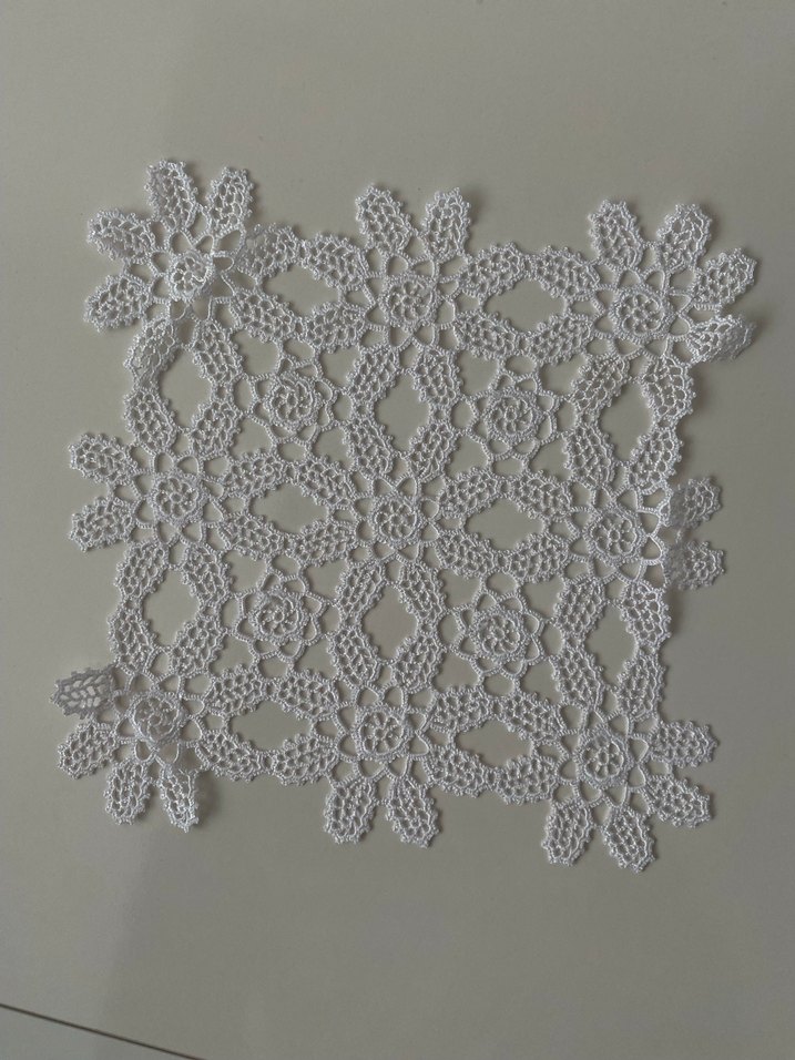 Beyaz Dantel El İşi Motifli Kare