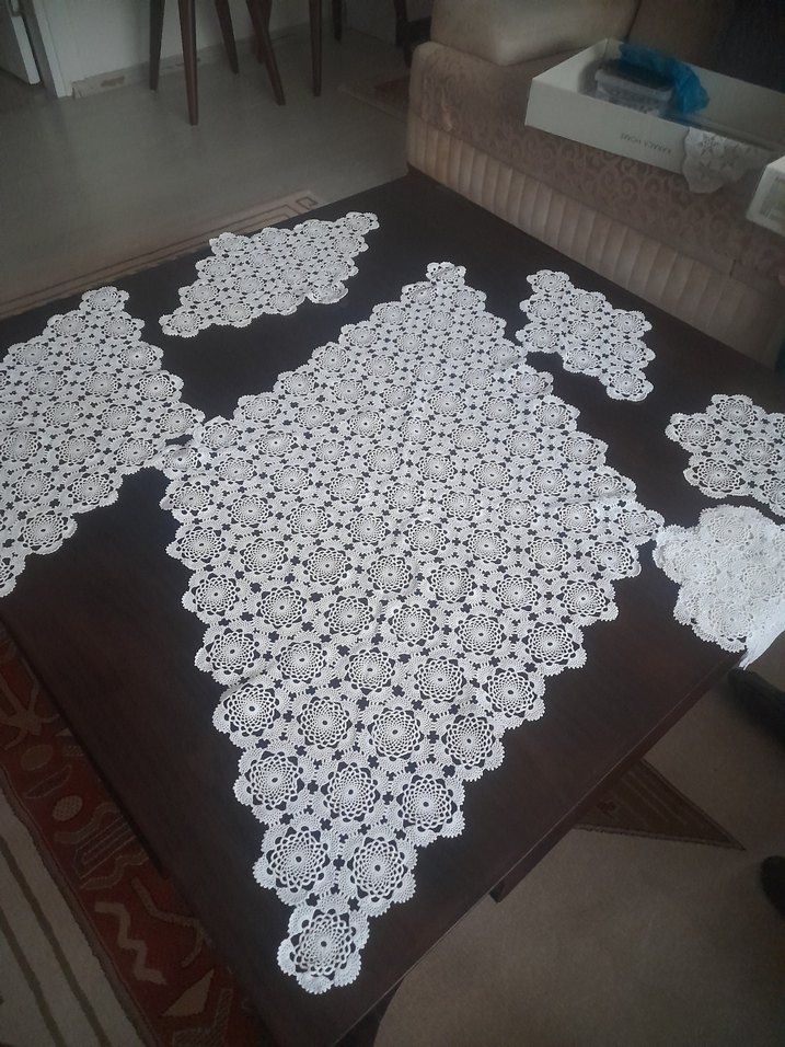 Beyaz Dantel El Örgüsü Masa Örtüsü Seti
