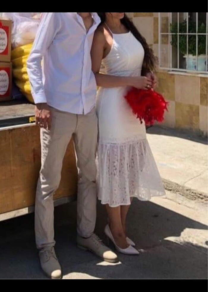 Beyaz dantel elbise