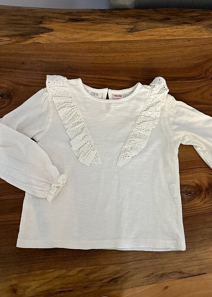 Beyaz dantel güpür fırfırlı bluz tshirt