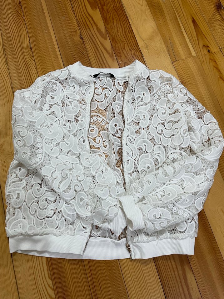 Beyaz dantel işlemeli, uzun kollu, yuvarlak yakalı, bol kesim bohem tarzda kadın bluz. Günlük kullanıma uygundur.