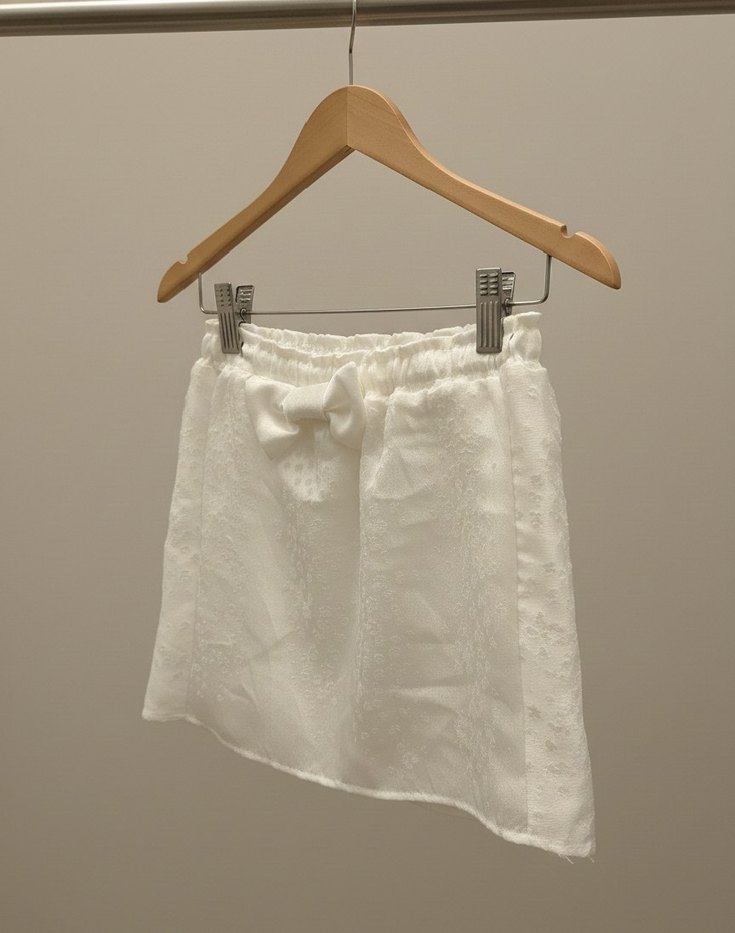 Beyaz renkli, , dantel işlemeli ve beli lastikli bol kesim çocuk etek. Günlük kullanım için bohem tarzda uygun. ( kendim dikiyorum) kumaşında defo var ama model gibi duruyor