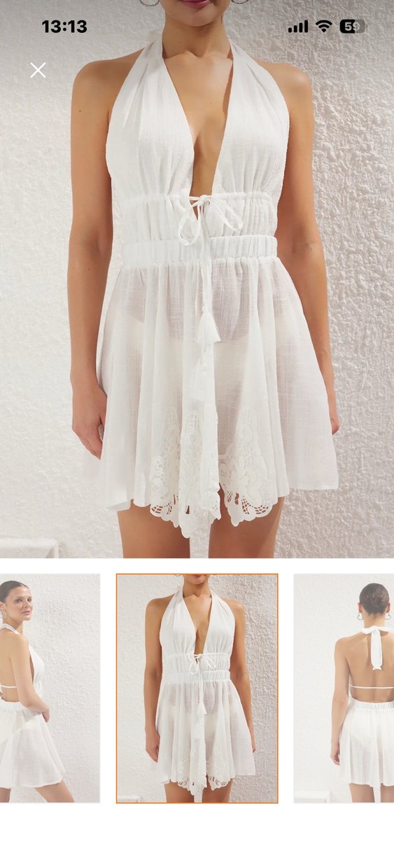 Beyaz Dantel İşlemeli Plaj Elbisesi