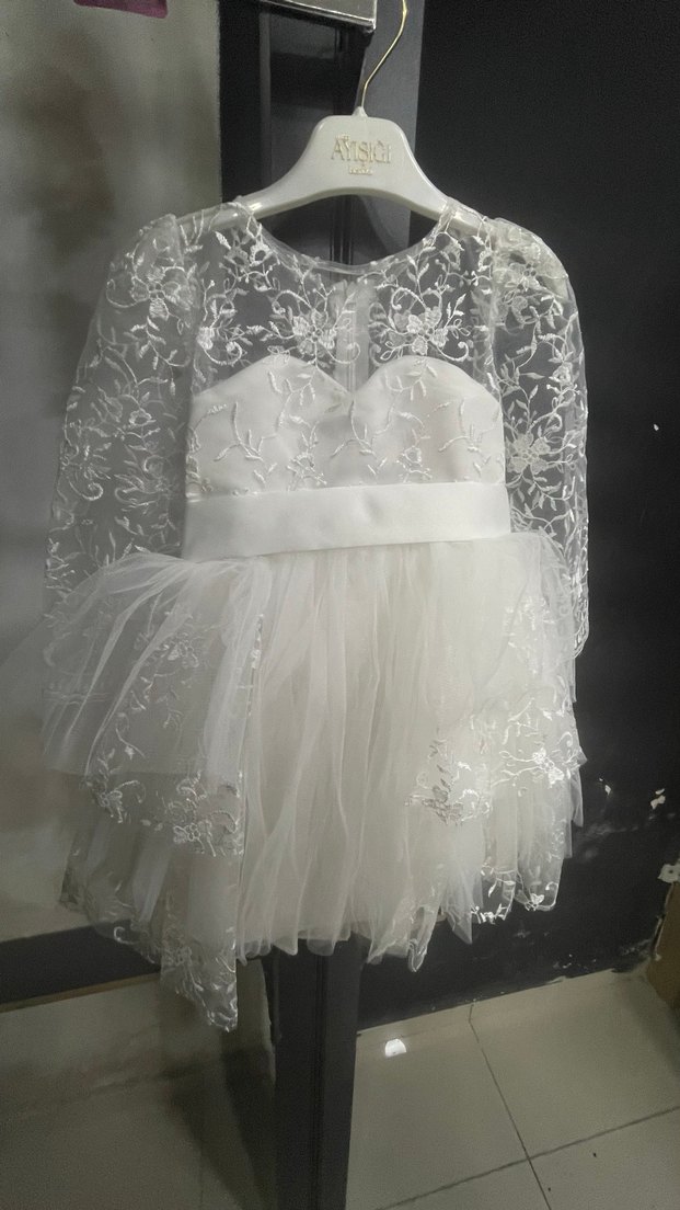 Yegenimi almıştım yegenime olmadı değişim hakkım da geçtiği için elimde kalmasın diye satıyorum sıfır şekilde duruyor 4 yaş diyor ama biraz kalıbı Dantel işlemeli uzun kollu, straplez yaka ve işlemeli desenli, bohem tarzda beyaz çocuk gelinliği küçük üç yaşa olur