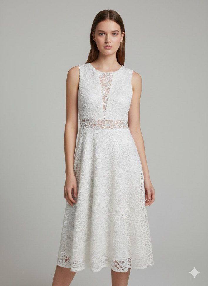 Beyaz Dantel Midi Kokteyl Elbisesi