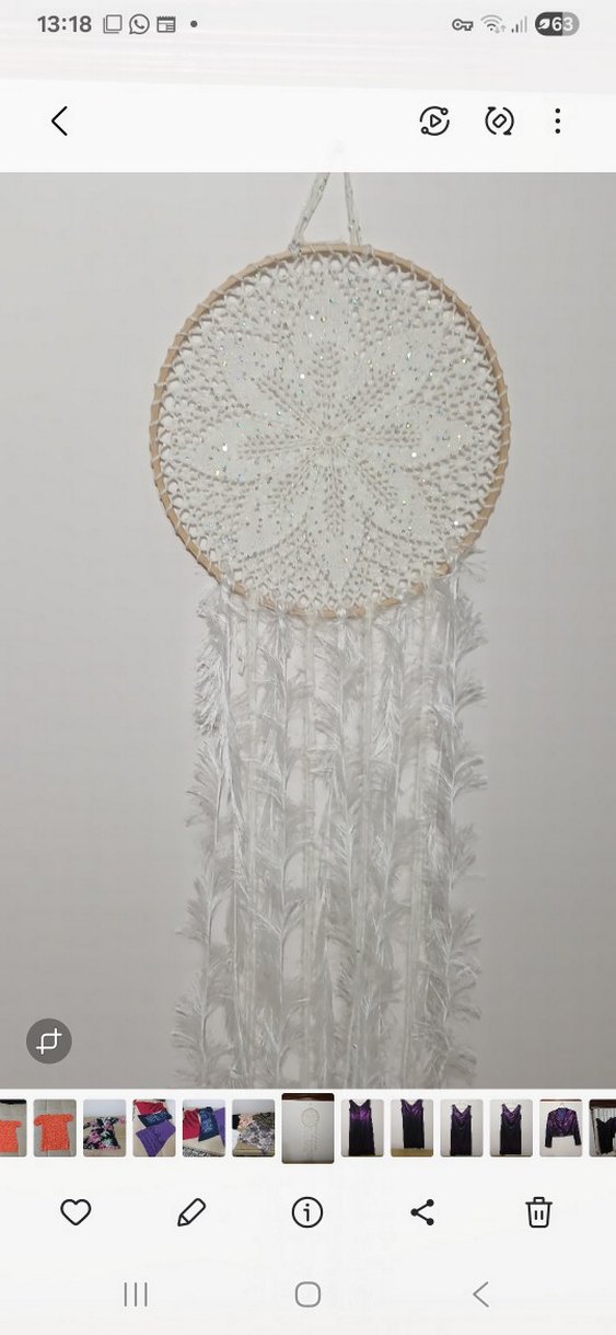 Hafif ve zarif beyaz dantel rüya kapanı, tüy detaylarıyla duvar dekorasyonuna yumuşak bir dokunuş katar.