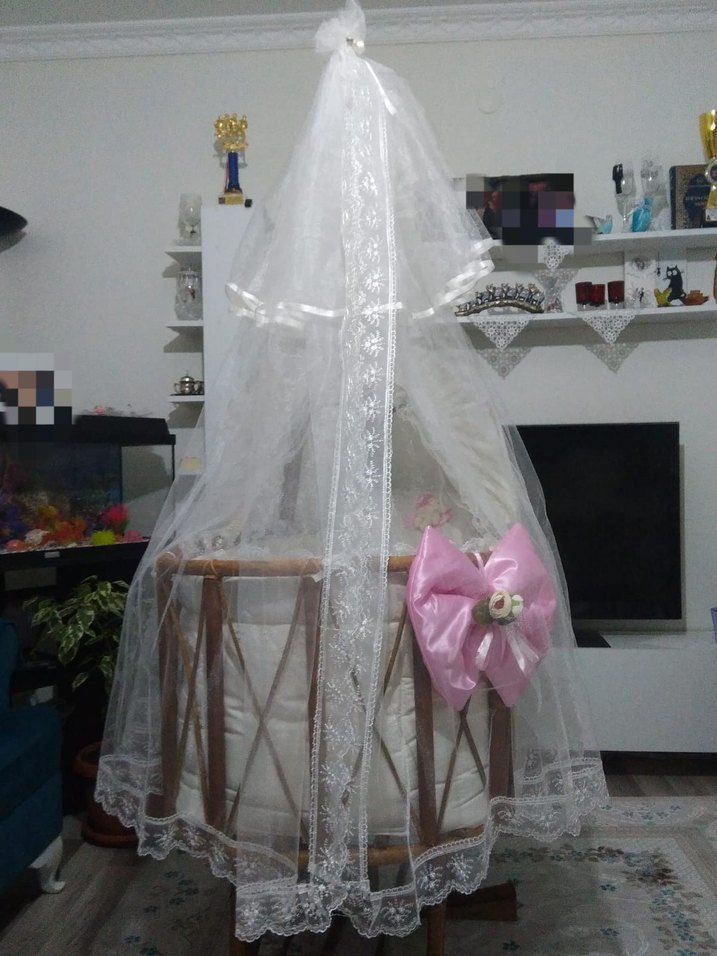 Beyaz Dantel Tüllü Bebek Beşiği