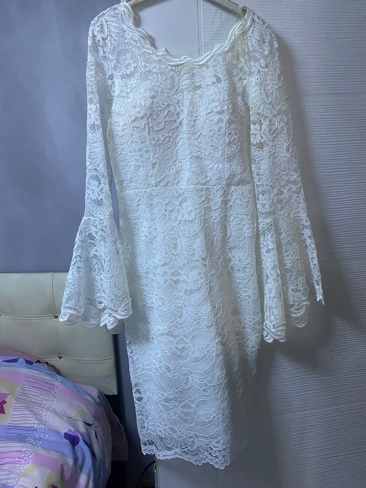 Bu beyaz dantel elbise, uzun kolları ve işlemeli deseniyle bohem tarzını yansıtıyor. Tekne yaka ve vücuda oturan kesimiyle klasik şıklık sunar. Oğlumun sünneti için almıştım bir kere giyildi tertemiz bir ürün