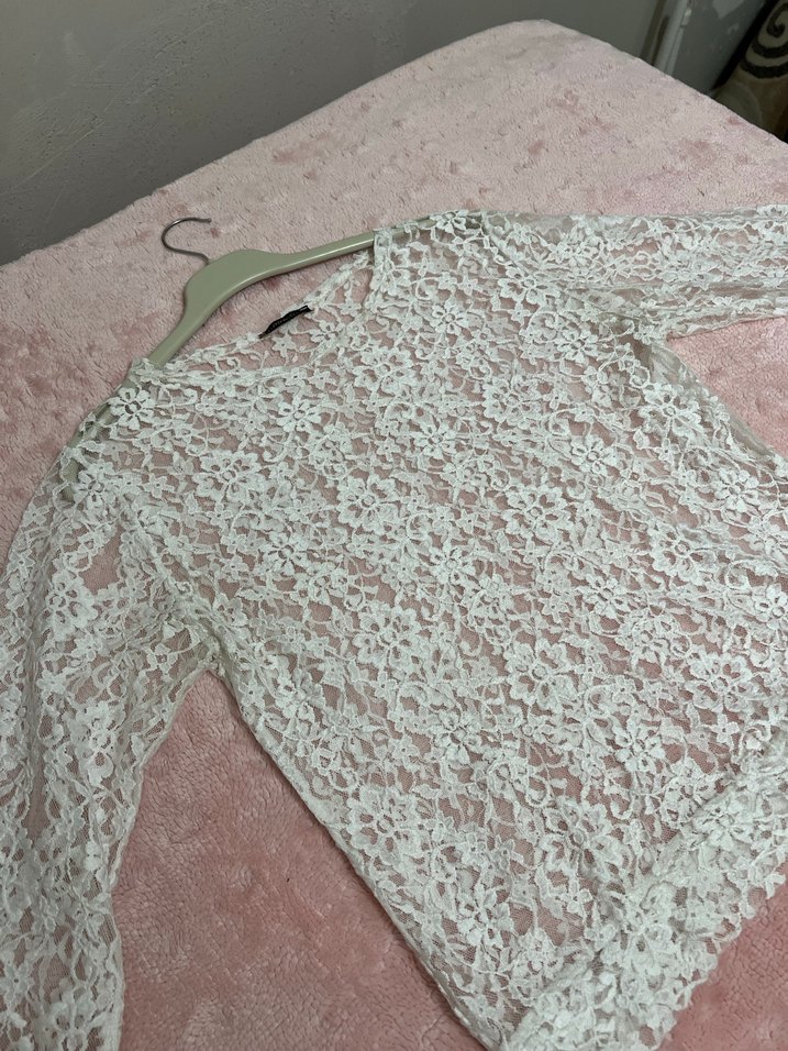 Beyaz Dantel Uzun Kollu Kadın Bluz