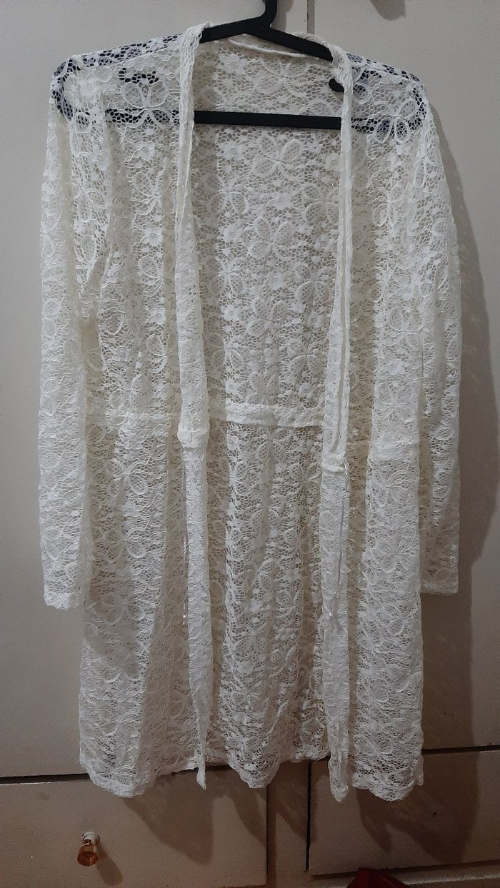 Beyaz renkte, uzun kollu ve bol kesim bohem tarzda pareo. sorunsuz. teklife açık