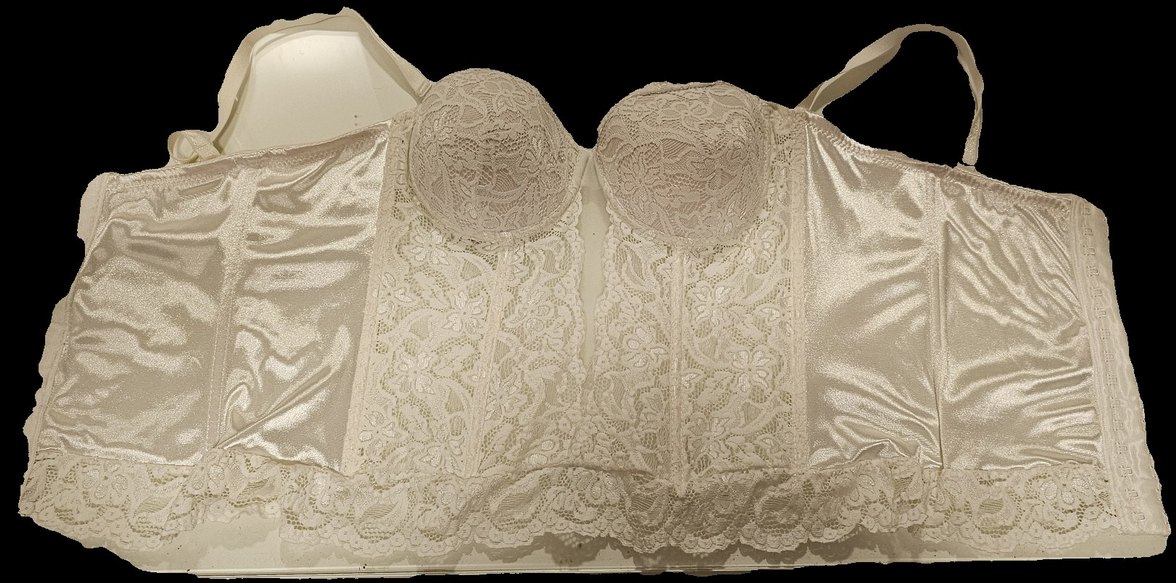 Bu beyaz vintage tarzı sütyen/korse, bohem tasarımla detaylı dantel işçiliğine sahiptir. Normal boyda, hafif ve zarif görünümlüdür.