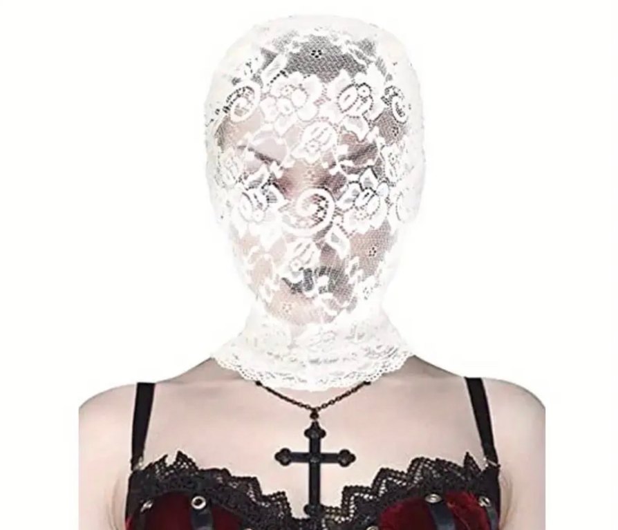 Tam yüzü kaplayan beyaz dantel yüz maskesi, çiçek desenleriyle zarif bir görünüm sağlar. Kostüm veya moda kullanımı için uygundur.
