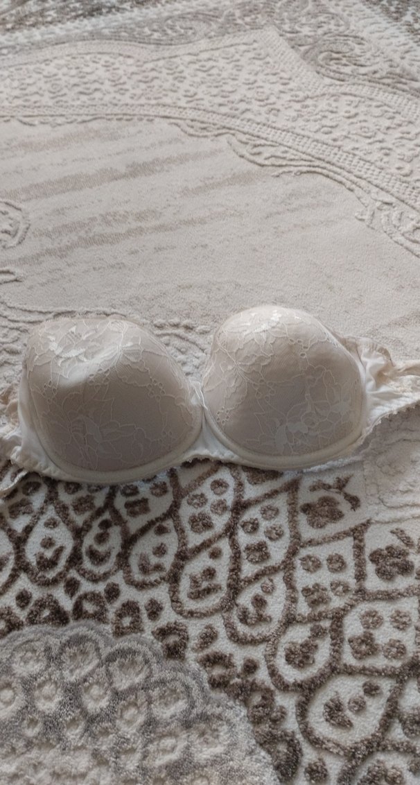 Beyaz, dantelli ve desensiz tasarıma sahip, rahat ve bohem tarzda sütyen. Normal uzunluktadır.