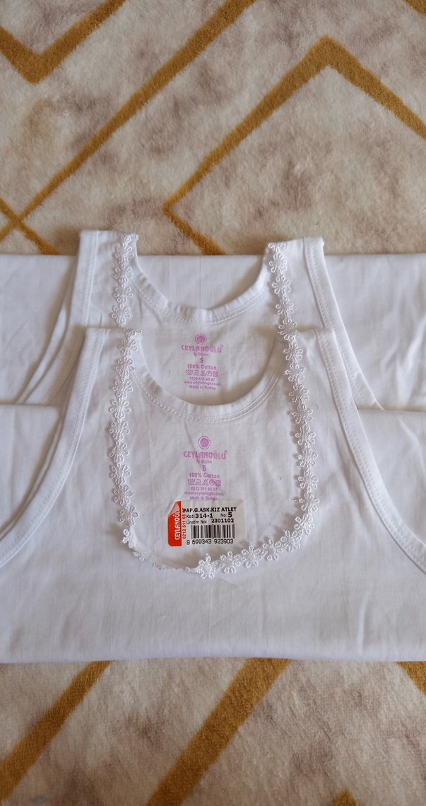 Yumuşak, nefes alabilen kumaştan yapılmış, yakası dantel detaylı beyaz çocuk atlet .pamuk sıfır ürün