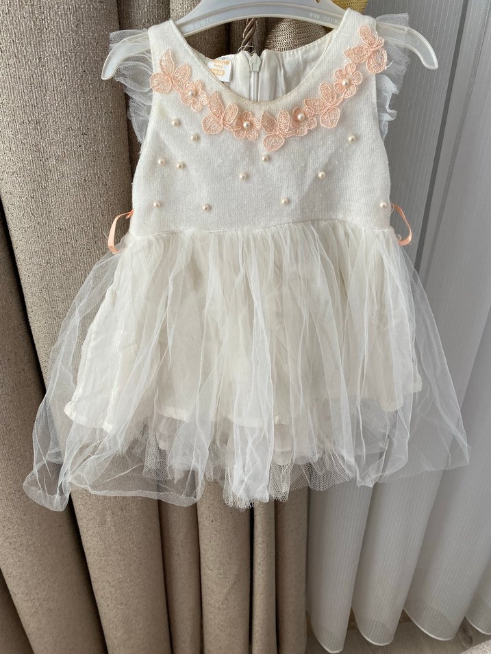 Kolsuz, işlemeli dantel çiçek ve inci detayları yumuşak tül etekli bir kac lekesi bulunur