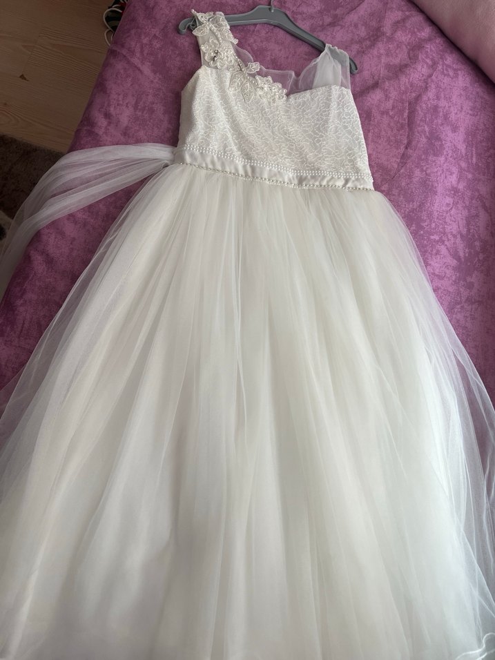 Beyaz Dantelli Kız Çocuk Abiye Elbise