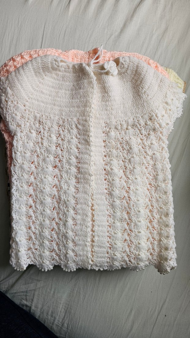 Beyaz dantel detaylı, vintage tarzda kızlar için kolsuz ve vücuda oturan örgü süveter. Pastel renk ve desensiz tasarım zarif görünüm sağlar.
