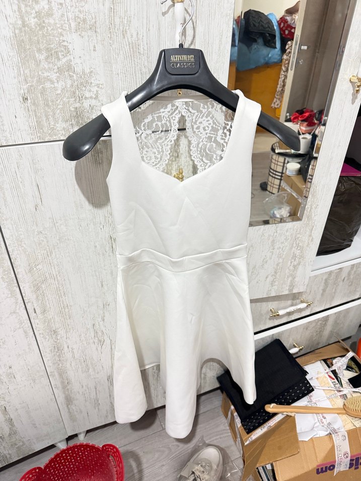 Beyaz Dantelli Mini Abiye Elbise