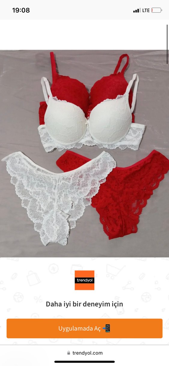 Beyaz dantelli, kısa boylu ve rahat konvansiyonel tarzda sütyen. Takımda uyumlu dantelli külotlar da bulunur. Marka: Trendyol.