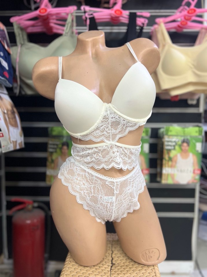 Beyaz, kısa boy mini sütyen takımı, bohem tarzda, ince dantel detaylarıyla minimal ve hafif bir tasarıma sahiptir. 75-80-90B mecvut dolgulu sutyen