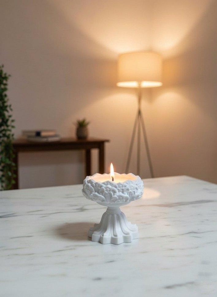 Beyaz Dekoratif Ayaklı Mumluk