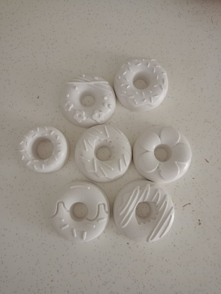 Beyaz Dekoratif Donut Şekilli boyama seti taş tozundan