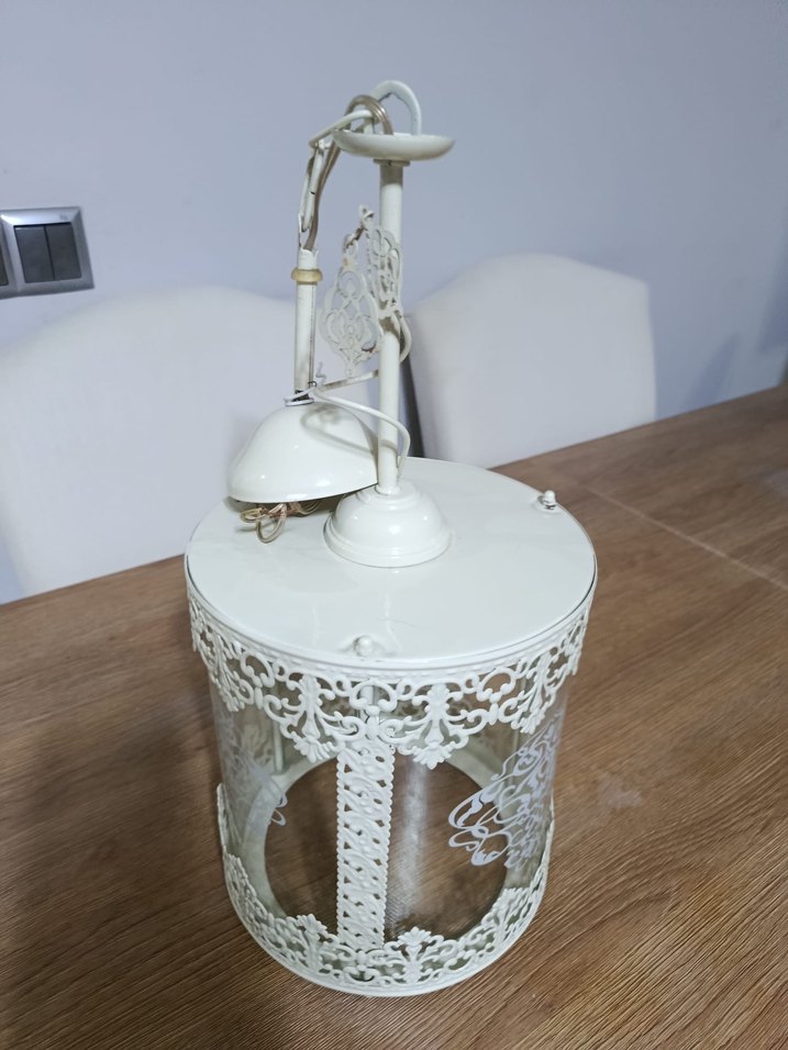 Detaylı kesim desenlere sahip beyaz metal dekoratif avize, asma tipi aydınlatma için uygundur.