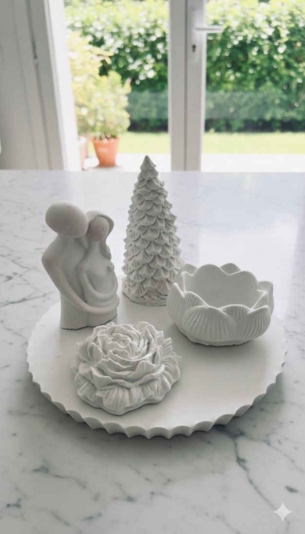 Beyaz renkte, ağaç, çiçek ve çift figürü gibi çeşitli sanatsal şekillerde dekoratif mum ve mumluk seti. Şık ev dekoru için uygndur. Dilerseniz Lotus dekorunu içerisine mum olabilir dilerseniz takı koymak için kullanabilirsiniz.