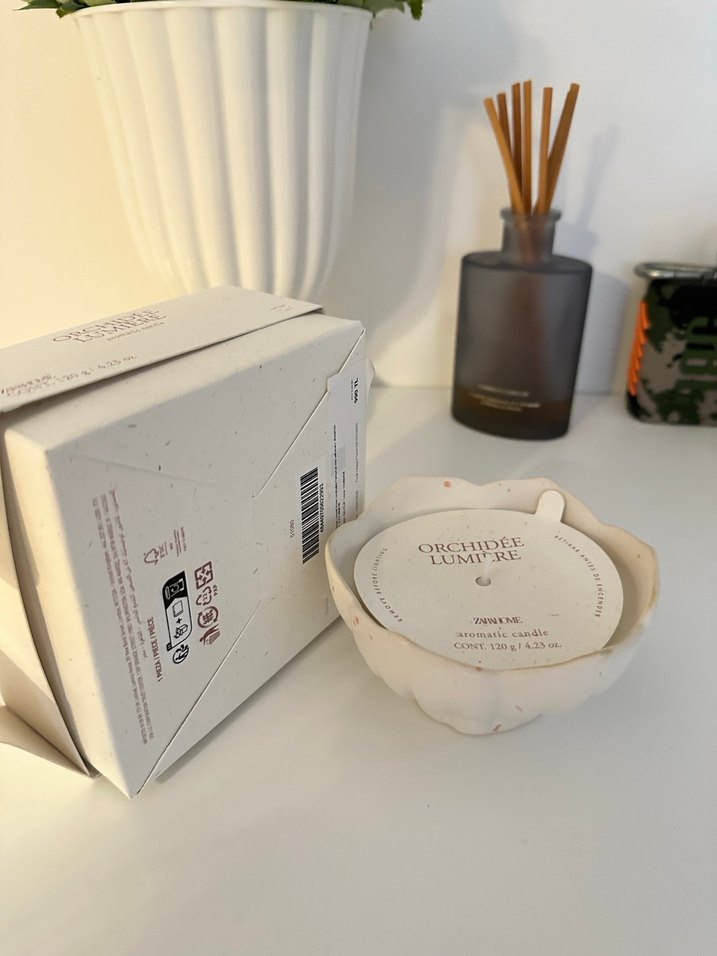 Çiçek şeklinde tutucu içinde beyaz dekoratif mum, yumuşak ve sıcak bir ortam sağlar. Rahatlatıcı anlar için idealdir. ️ Zara Home hiç kullanılmamıştır