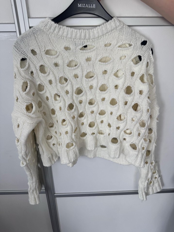 Beyaz Delikli Triko Kadın Kazak