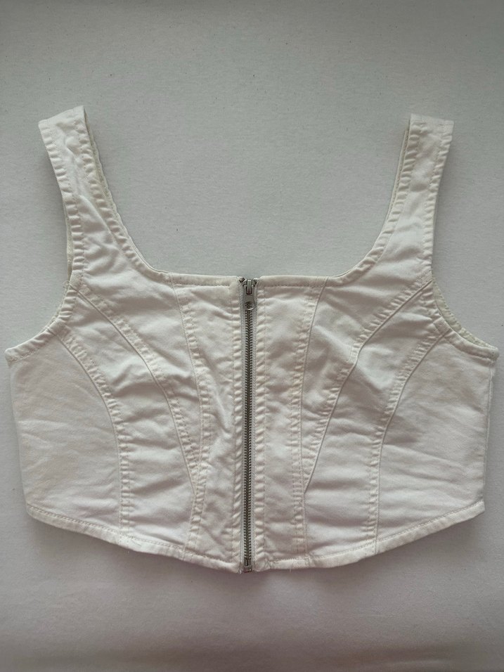 Beyaz Denim Fermuarlı Büstiyer