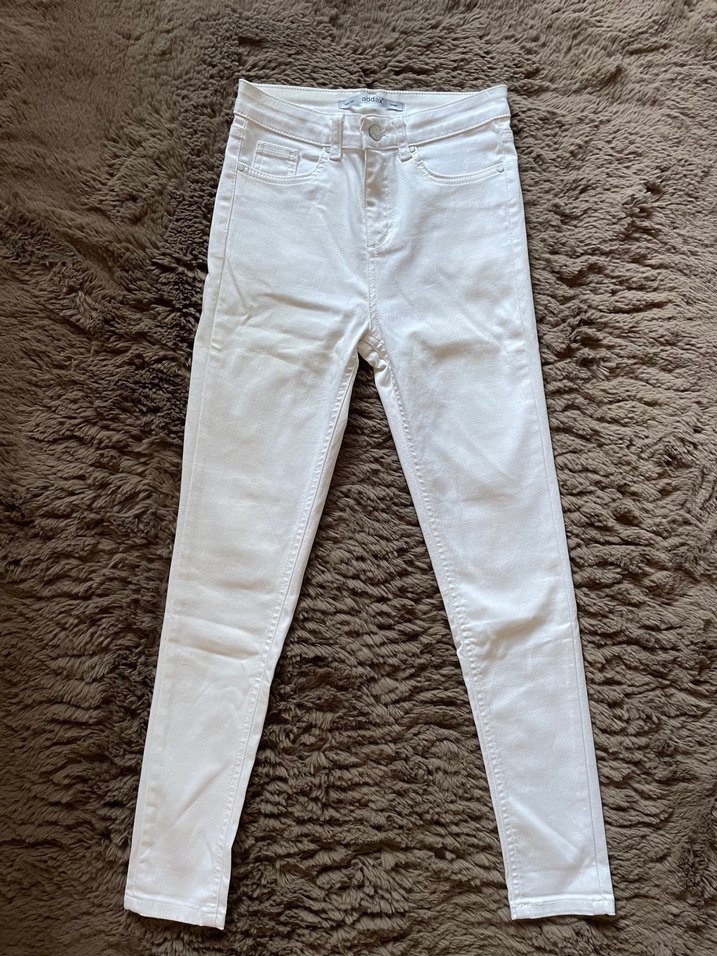 Beyaz orta-ince denim kumaştan yapılmış, slim fit ve yüksel bel kadın pantolon, likralı. W 26 ( 34/36 beden olur)