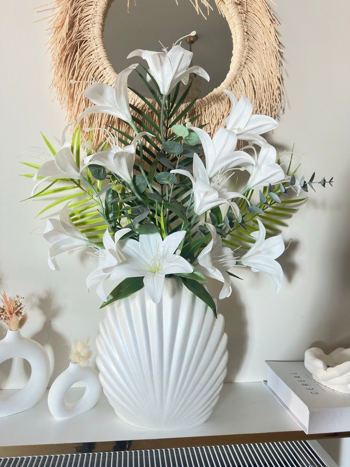 Beyaz deniz Kabuk Desenli Vazo ve yapay lüx çiçek