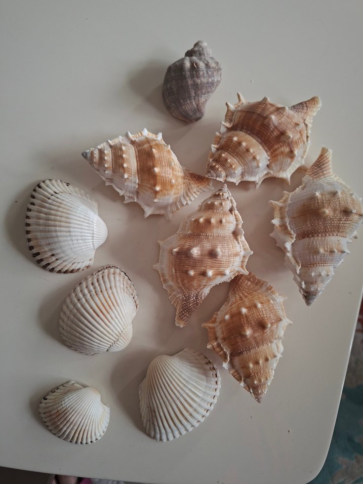 Çeşitli şekil ve dokuda beyaz ve açık tonlarda deniz kabukları seti, ev dekorasyonu için uygundur.
