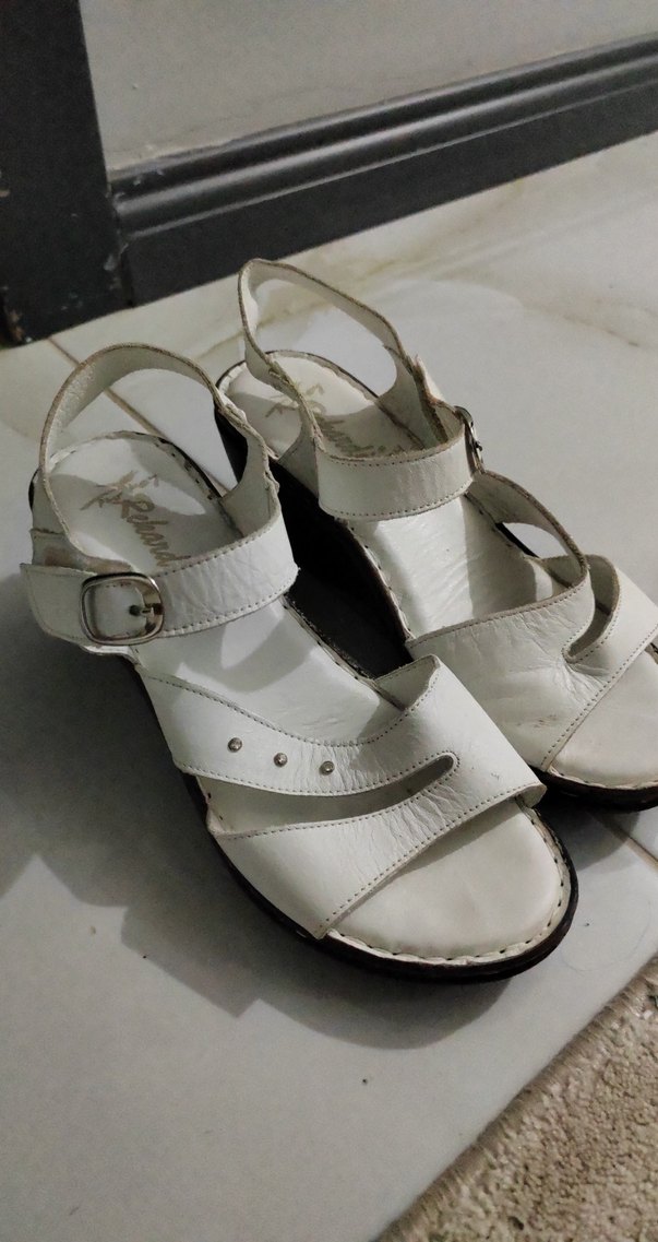 Beyaz deri, dolgu topuklu ve tokalı kadın sandaletleri, minimalist ve bohem tarzda, günlük kullanıma uygun.
