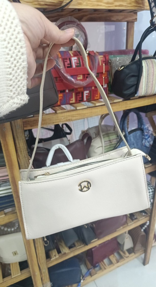 Beyaz Deri Fermuarlı Kadın Omuz Çantası