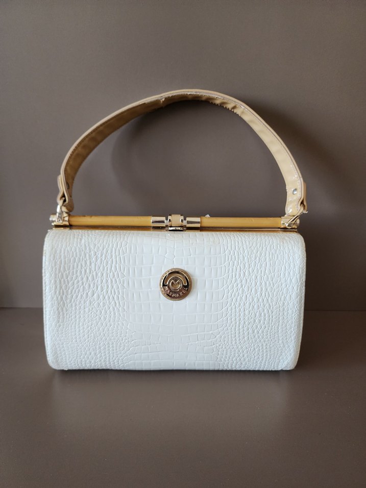 Beyaz Deri Kabartmalı Kadın Çanta matmazel