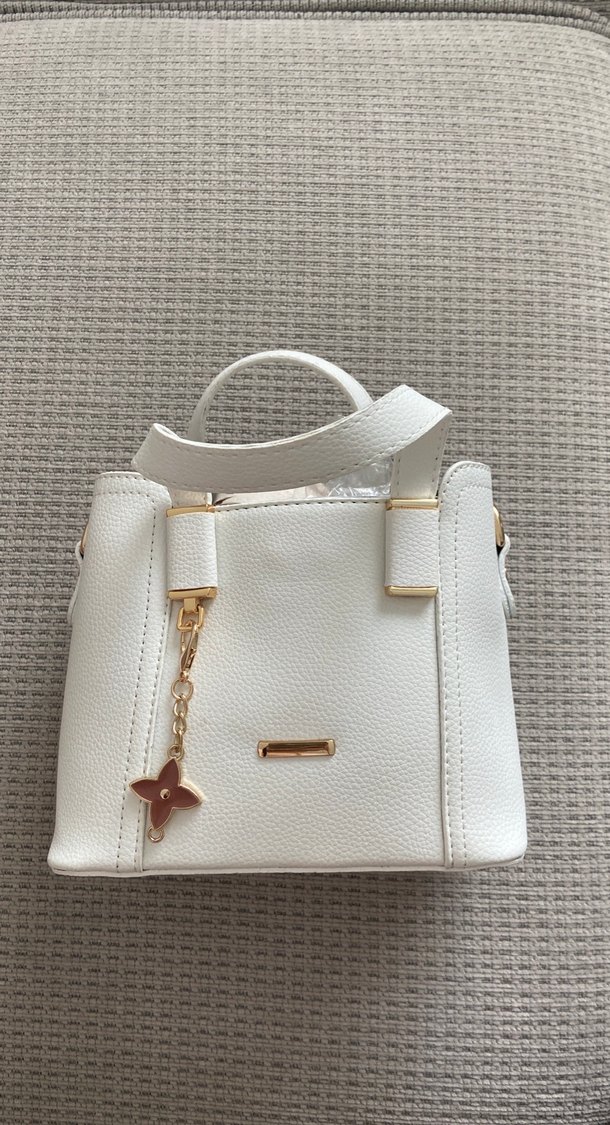 Toka detaylı beyaz çanta şık bir duruşu var benzer bir model var bende o yüzden satıyorum bunu hiç kullanılmadı. Butik ürünüdür