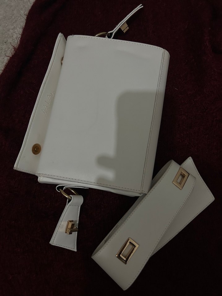 Günlük kullanım için uygun, tokalı tasarıma sahip beyaz deri kadın çanta. Minimalist ve sokak stiliyle uyumlu, desensiz ve sade görünümlü.