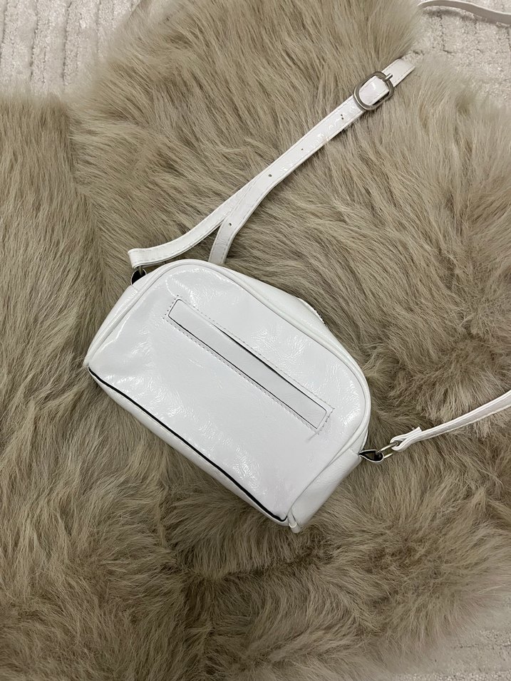 Beyaz deri kadın çanta,sade tasarıma sahiptir. Günlük kullanım için uygun, desen içermeyen sokak stili bir çantadır.