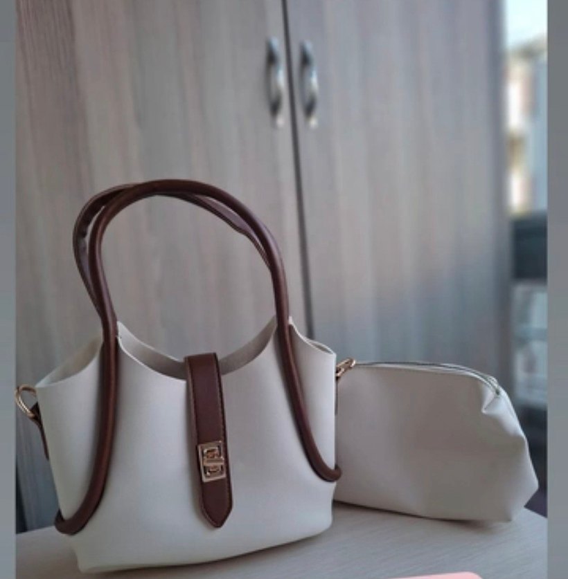 Beyaz deri kadın çanta, modern klasik tasarım ve tokalı detaylara sahip, minimalist stilde günlük kullanıma uygun.