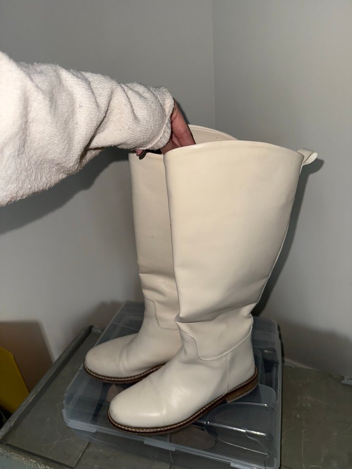 Beyaz Deri Kadın Dizüstü Botlar
