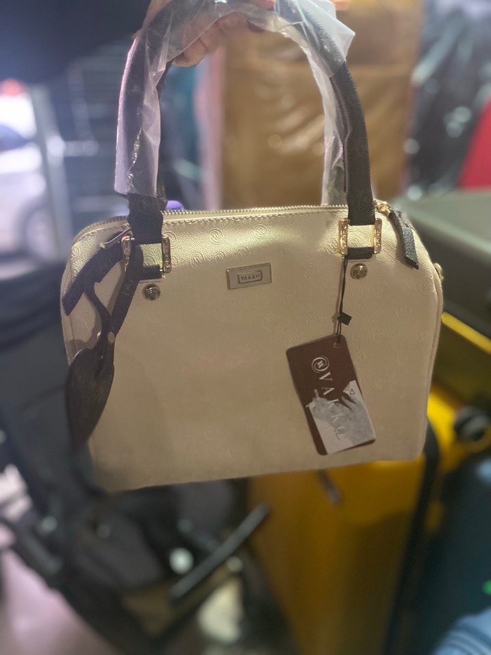 Beyaz deri kadın omuz çantası, tokalı detaylara sahip ve baskılı deseni bulunur. Trendy casual ve sokak stiline uygundur.