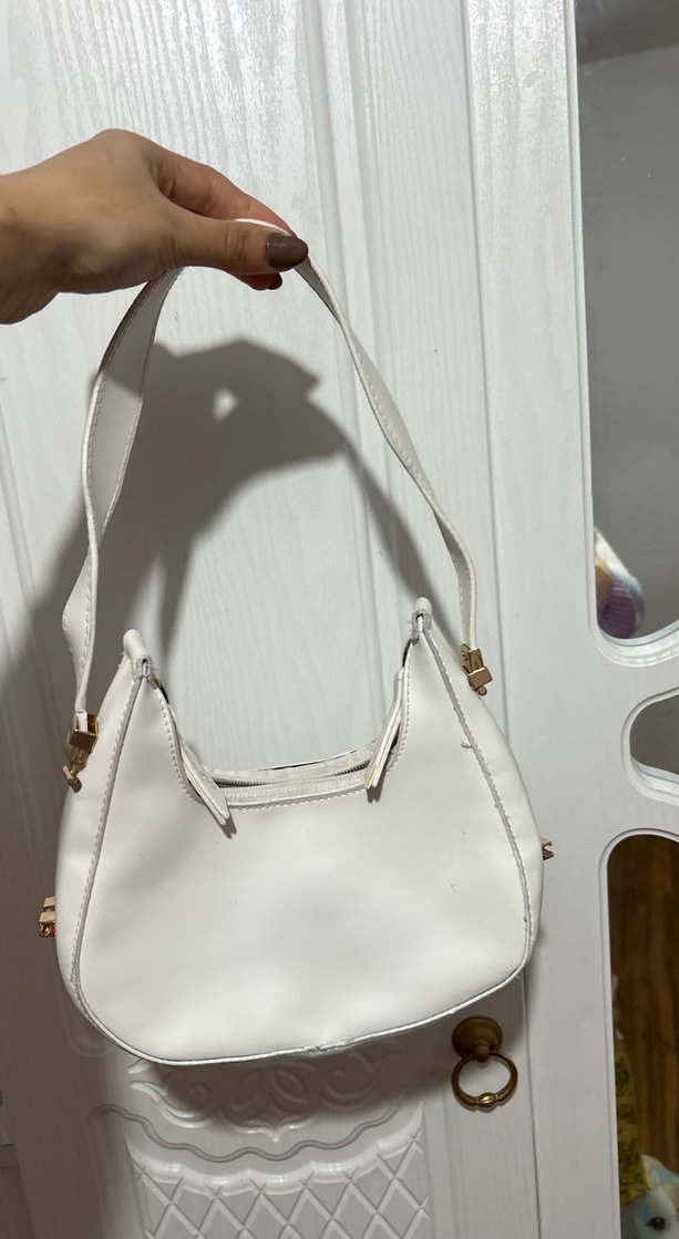 Beyaz Deri Kadın Omuz Çantası