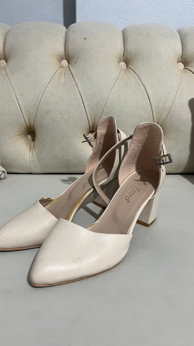 Beyaz deri,klasik tarzda,düğünler için uygun, pastel tonlarda