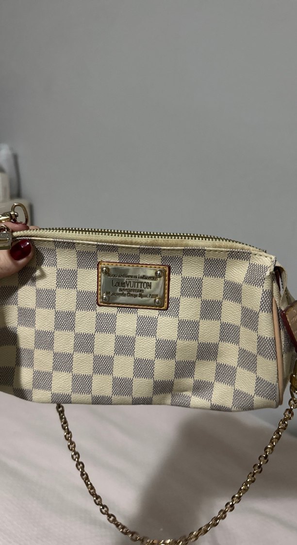 Beyaz deri, parlak kareli desene sahip kadın çanta. Fermuarlı ve modern klasik tarzda, Paris esintili günlük kullanım için uygun.