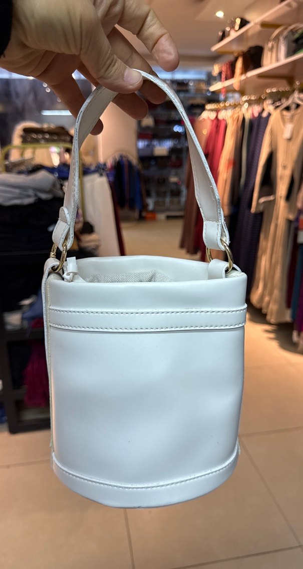 Beyaz Deri Kemerli Kadın Çanta