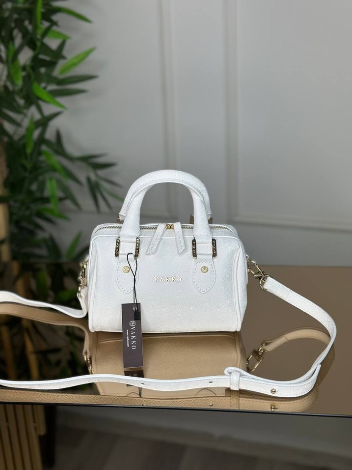 Beyaz Deri Kemerli Kadın Çanta Vakko