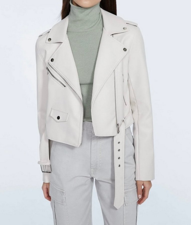 Beyaz Deri Kemerli Kadın Ceket